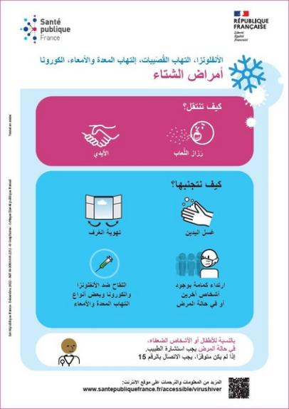Grippe, bronchiolite, gastro-entérite, covid : les maladies de l'hiver [Affiche A4, Arabe]