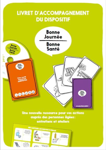 Le dispositif " Bonne journée, bonne santé " est destiné aux chargés de prévention et promotion de la santé auprès des personnes âgées précaires. Il s'inscrit dans le cadre général du programme " Vieillir en bonne santé " conçu et mis en place par Santé publique France depuis 2004, en partenariat avec les caisses de retraite. Ce programme soutient l'acquisition, chez les 55 ans et plus, de comportements protecteurs individuels pour un vieillissement en santé. Le kit " Bonne journée, bonne santé " s'adresse donc aux professionnels - animateurs, chargés de prévention, travailleurs sociaux, médiateurs de santé, bénévoles de l'action sociale - intervenant auprès des personnes âgées concernées par la précarité, qu'elle soit d'ordre économique, sociale ou culturelle. Il ne peut être commandé que par ces professionnels. Il est composé de huit supports qui interagissent et se complètent. Le professionnel y trouve des outils pour se documenter sur les sujets " Bien vieillir " et préparer ses interventions, la personne âgée se voit remettre des supports pour identifier et mémoriser les comportements protecteurs. Chacun des éléments : 1. un didacticiel vidéo qui familiarise les professionnels avec le dispositif en quelques minutes 2. un livret d'accompagnement qui leur permet de travailler la méthodologie, de s'approprier les outils et les sujets " bien vieillir " 3. des cartes de dialogue afin d'explorer avec les intéresses leurs connaissances sur la santé et leurs pratiques quotidiennes concernant six sujets : alimentation, activité physique, prévention santé, activité cérébrale, lien social et logement 4. six fiches conseils qui résument repères, conseils et ressources " bien vieillir " pour répondre aux interrogations des personnes âgées en entretien individuel ou collectif 5. l'étude préalable à l'origine du dispositif 6. des autocollants à destination des personnes âgées reprennent les dessins des cartes de dialogue et les aident à exprimer habitudes, projets santé et à se remémorer de manière visuelle des informations et des rendez-vous importants. 7. une affiche, remise en fin d'entretien à la personne âgée synthétise les comportements positifs et les sujets sur lesquels agir au moyen d'émoticônes 8. un calendrier perpétuel, qui dispense des conseils saisonniers, sert à inscrire les recommandations et points de vigilance dans la durée est décrit et peut être téléchargé sur la page http://www.pourbienvieillir.fr/bonne-journee-bonne-sante-dispositif-dintervention-en-promotion-de-la-sante-pour-les-personnes Chaque kit contient en plus des huit supports, 30 exemplaires de ceux destinés à la personne âgée, soit 30 affiches, 30 autocollants et 30 calendriers.