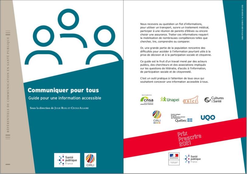 Guide pratique à l'attention de tous ceux qui souhaitent concevoir une information accessible à tous. Le prix Prescrire 2021 a été décerné au Guide Communiquer pour tous.