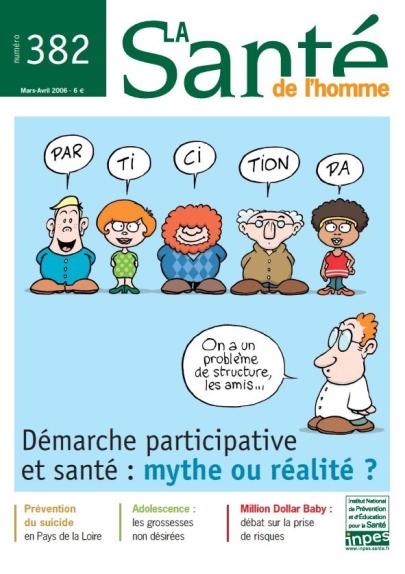The main feature (30 pages) focuses on the participatory approach in health promotion initiatives. Eighteen experts—doctors, social workers, health educators, anthropologists, and others—discuss the challenges, benefits, and risks associated with implementing the participatory approach, drawing on their professional experience. Also featured in this issue are two series of articles on two current topics: first, suicide prevention, highlighting the groundwork being done in the Pays de la Loire region; and second, health promotion initiatives aimed at reducing the number of unwanted pregnancies among teenagers. Finally, the "Health in Figures" section presents the main findings of the latest INPES Health Barometer. And in a completely different vein, Clint Eastwood’s film "Million Dollar Baby" is analyzed to serve as a basis for a discussion with adolescents on risk prevention.