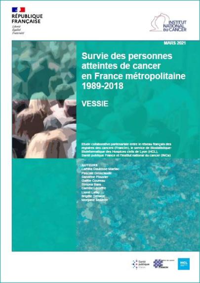 In France, the estimated number of new cases of invasive bladder cancer in 2018 was 13,074, 81% of which occurred in men. The estimated number of deaths from bladder cancer in 2018 was 5,335, 77% of which occurred in men. Key points: 5-year age-standardized survival rate of 55% for men and 49% for women between 2010 and 2015; Worse survival for women compared to men, observed across all age groups, and linked to higher excess mortality immediately after diagnosis; Decline in survival between 1990 and 2015, more pronounced among younger individuals, likely an artifact due to changes in coding and case registration.