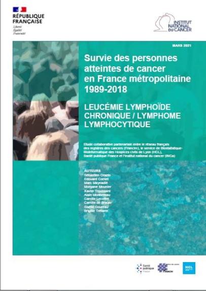 In France, the estimated number of new cases of Chronic Lymphocytic Leukemia/Lymphoma (CLL/LL) in 2018 was 4,674, including 2,770 cases in men and 1,904 cases in women. Key points: Favorable prognosis with a 5-year standardized net survival rate of 89% for individuals diagnosed between 2010 and 2015; Individuals aged 80 die more frequently from causes other than their CLL/LL (observed survival of 63% and net survival of 82% at 5 years); Improved 5-year net survival regardless of age at diagnosis between cases diagnosed in 1990 and those diagnosed in 2015 (+16 percentage points): Less marked improvement after 2005 (difference between 2015 and 2005 in standardized net survival of +6 percentage points). : Excess mortality is virtually zero for people under 80 years of age starting in the first year of follow-up.