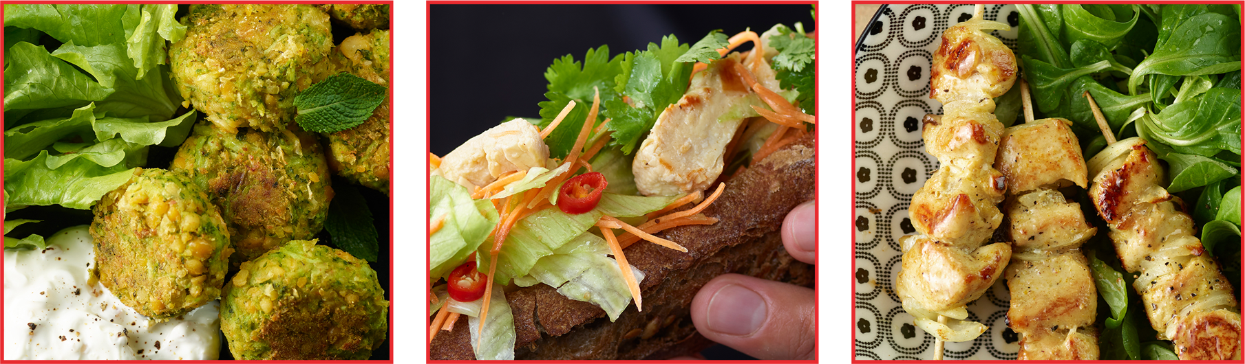 As a result, six new delicious, healthy, and quick-to-make recipes are available on the mangerbouger.fr website and on the @mangerbougerfr Instagram account. On the menu: broccoli falafels, cereal-crusted fish & chips, tuna, corn, and red bean tacos, spicy chicken skewers, spinach and feta brick pastries, and a chicken banh mi. A variety of appetizing dishes that can be prepared in just a few simple steps.