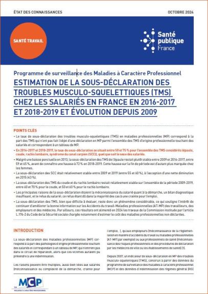 Work-Related Illness Surveillance Program. Estimation of underreporting of musculoskeletal disorders (MSDs) among employees in France in 2016–2017 and 2018–2019, and trends since 2009