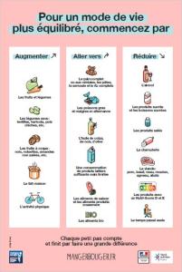 It features several sections on “eating better” and “getting more exercise,” and highlights recommendations for adopting a more balanced lifestyle (infographic).