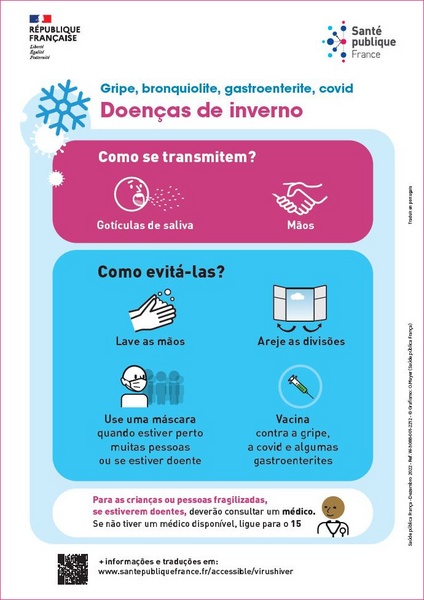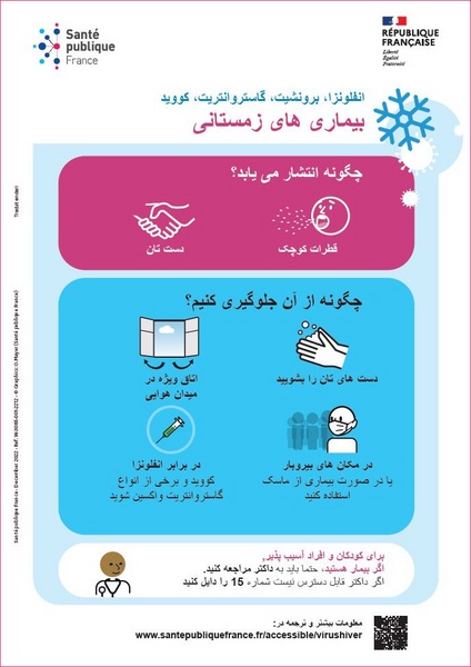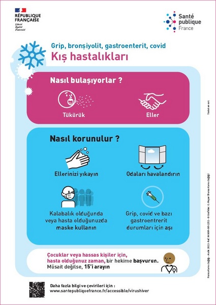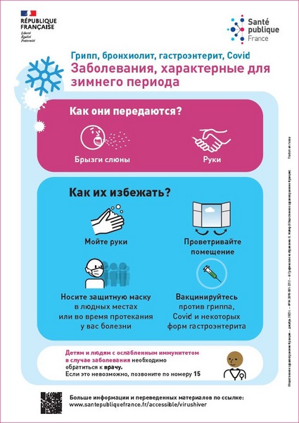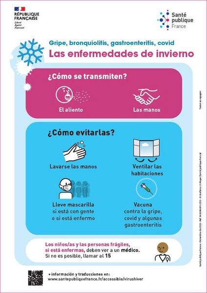De nombreux virus circulent l'hiver, comme la bronchiolite, la gastro-entérite, la grippe, le covid. Cette affiche d'information sur les maladies de l'hiver, créée collectivement par des...