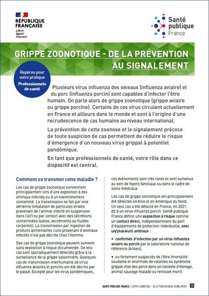 Grippe zoonotique - De la prévention au signalement : Repères pour votre ...