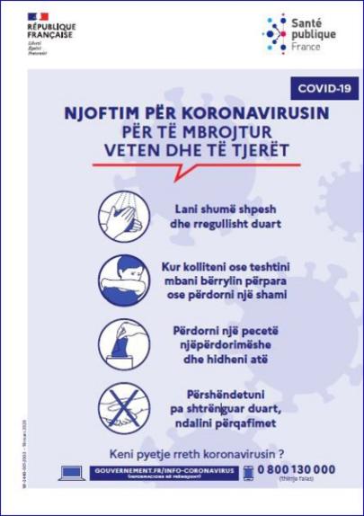 Alerte coronavirus : pour se protéger et protéger les autres [Albanais]