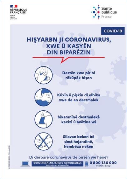 Alerte coronavirus : pour se protéger et protéger les autres [Kurde kurmandji]