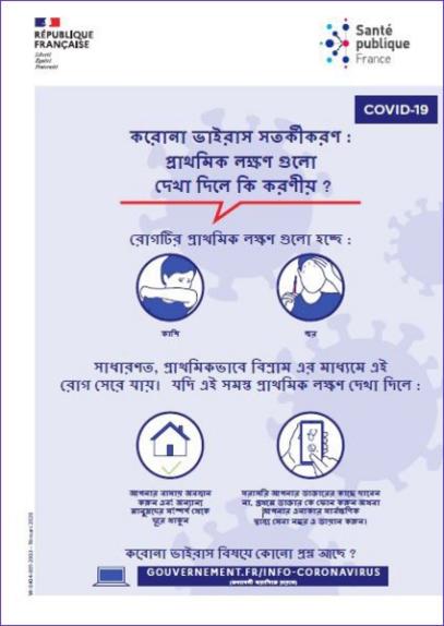 Alerte coronavirus : que faire face aux premiers signes [Bengali]