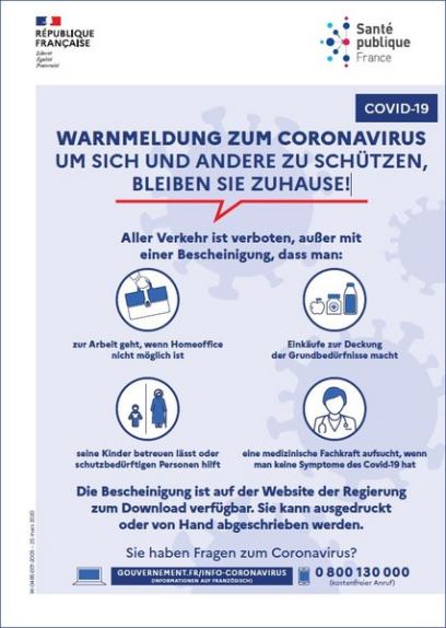 Alerte coronavirus : restez chez vous - Confinement [Allemand]