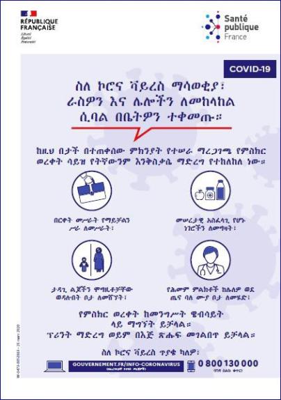 Alerte coronavirus : restez chez vous - Confinement [Amharique]