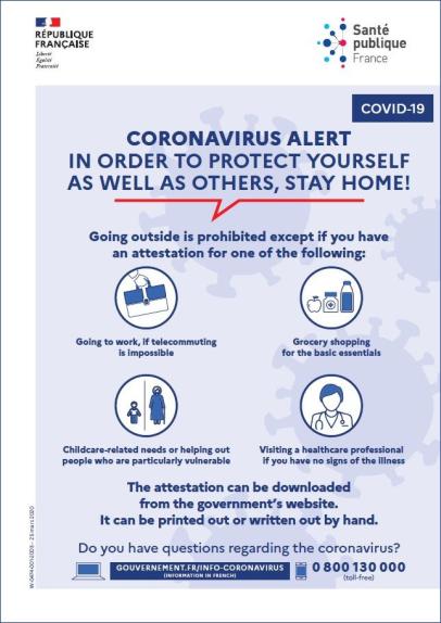 Alerte coronavirus : restez chez vous - Confinement [Anglais]