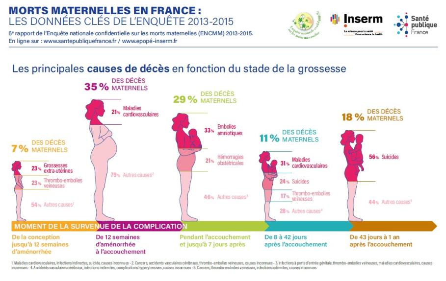 Morts maternelles en France. Principales causes de décès en fonction du stade de la grossesse, données clés de l'enquête 2013-2015 [infographie]