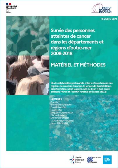 Cette étude porte sur le suivi des personnes après un cancer, résidant dans les départements et régions d'outre-mer (DROM) de la Guadeloupe, de la Martinique ou de La Réunion. Dix localisations cancéreuses sont étudiées : lèvre-bouche-pharynx, oesophage, estomac, " côlon et rectum ", poumon, sein, col de l'utérus, corps de l'utérus, prostate et " myélome multiple et plasmocytome ". L'étude porte sur la période de diagnostic 2008-2015, et elle est restreinte aux personnes âgées de 15 ou plus au moment du diagnostic. Le statut vital des personnes a été mis à jour au 30 juin 2018 par les registres selon une procédure standardisée. Cette étude est une déclinaison pour les DROM, et par département, de la partie 1 de l'étude Survie des personnes atteintes de cancer en France métropolitaine, qui portait sur la période 2010-2015. La méthode repose une modélisation du taux de mortalité en excès pour estimer la survie nette, comme dans la toute première étude de survie des personnes atteintes de cancer publiée en 2007. Cependant, les modèles utilisés ont été largement modifiés et améliorés et reposent à présent sur des splines multidimensionnelles pénalisées pour modéliser le taux de mortalité en excès ; ces modèles ont été développés au sein du service de Biostatistique-Bioinformatique des Hospices civils de Lyon (HCL). À noter que l'étude des tendances nationales de l'incidence et de la mortalité utilise aussi des splines multidimensionnelles pénalisées, mais dans le cadre de modèles de Poisson. Les données proviennent des registres des cancers de la Guadeloupe, de la Martinique et de La Réunion. Elles sont codées selon la classification internationale des maladies en oncologie, 3e révision (CIM-O3). L'étude porte sur les cas incidents diagnostiqués entre le 1er janvier 2008 et le 31 décembre-2015, âgés de 15 ans ou plus au diagnostic, avec un suivi jusqu'au 30 juin 2018. L'étude porte sur dix sites de cancer, présentés en Table 2. Ces définitions reprennent celles des études de survie et d'incidence des cancers en France métropolitaine.