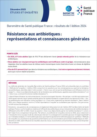 Résistance aux antibiotiques : représentations et connaissances générales. Baromètre de Santé publique France : résultats de l’édition 2024