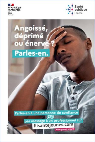 Angoissé, déprimé ou énervé ? Parles-en. [Affiche 40x60, lycée, garçon, DROM]