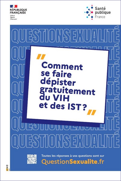 Editée à l'occasion de la semaine de la santé sexuelle 2023, cette affiche incite à consulter le site QuestionSexualite.fr pour s'informer sur le dépistage gratuit du VIH et des IST. Accroche :...