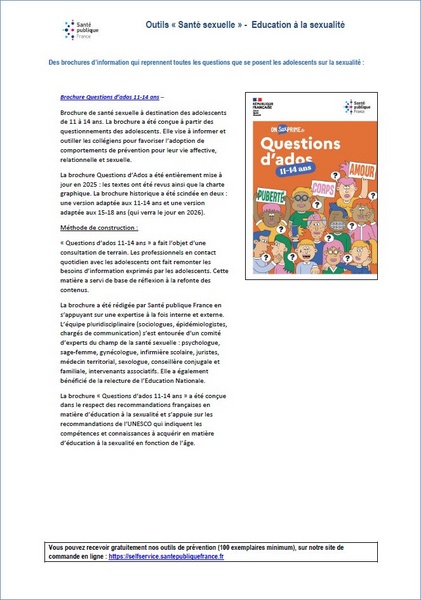 Cette brochure sur la santé sexuelle est à destination des adolescents de 11 à 14 ans. Le document a été conçu à partir des questionnements des adolescents. Il vise à informer et outiller les...
