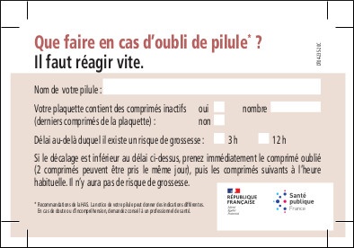 La carte " Que faire en cas d'oubli de pilule ? " est conçue comme un outil de dialogue entre le professionnel et sa patiente. Elle décrit la conduite à tenir en cas d'oubli de pilule. Les...