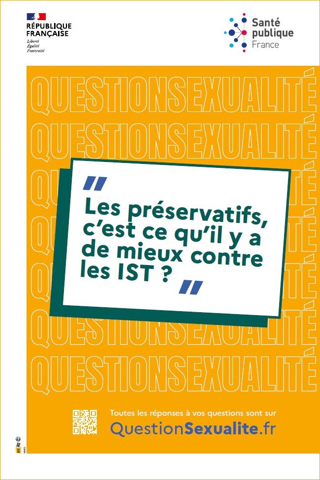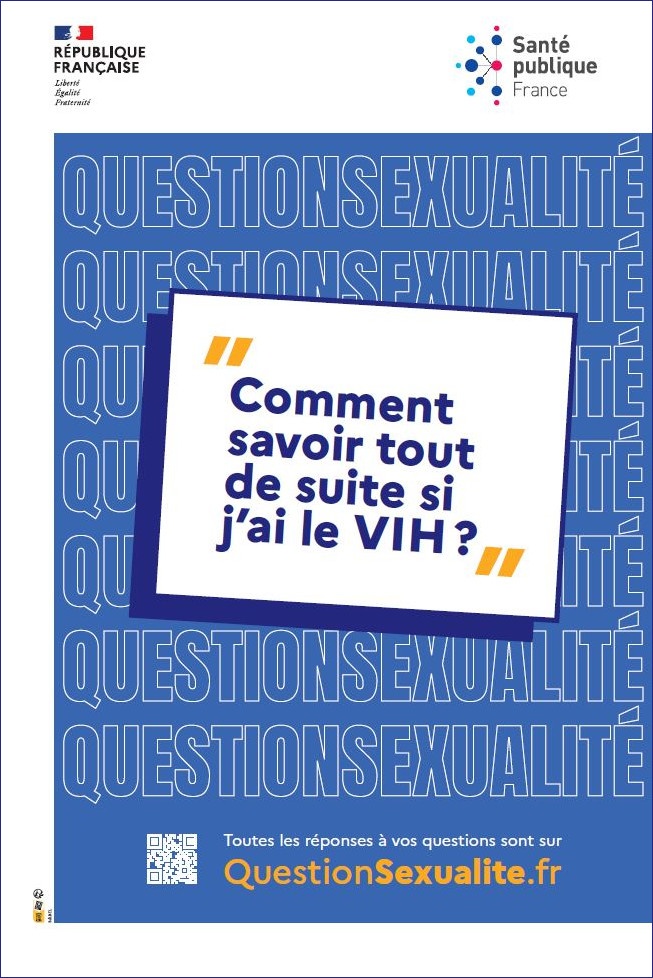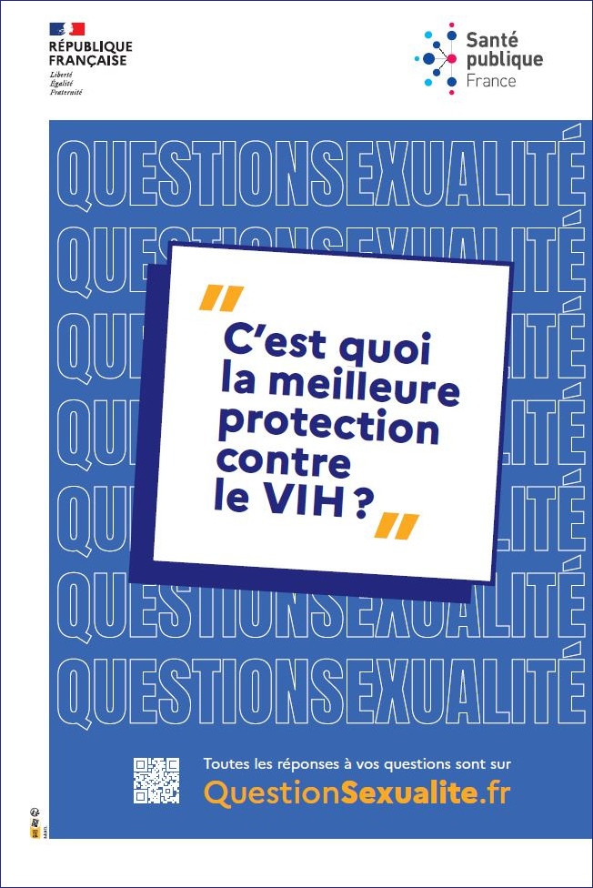 Editée à l'occasion de la semaine de la santé sexuelle 2023, cette affiche incite à consulter le site QuestionSexualite.fr pour s'informer sur les moyens de protection contre le VIH. Accroche :...