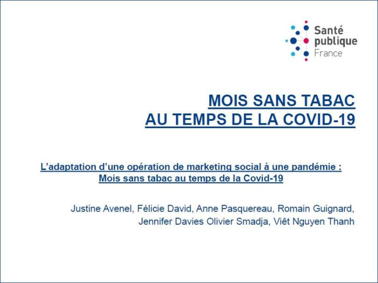 Mois sans tabac est un dispositif de marketing social destiné à encourager les fumeurs à arrêter de fumer pendant 30 jours en novembre et à utiliser les outils d'aide à l'arrêt. Cette communication décrit les adaptations qui ont été nécessaires pour maintenir ce dispositif durant la pandémie de Covid-19 en dépit des contraintes liées à la distanciation sociale et à l'interdiction des rassemblements et examine le bilan des éditions 2020 et 2021.