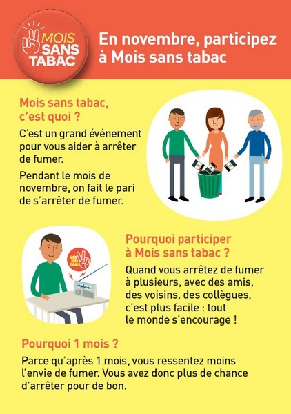 Tract d'information de la campagne "Mois sans tabac". Il explique le dispositif, les raisons d'y participer, les modalités d'inscription sur le site de Tabac info service.