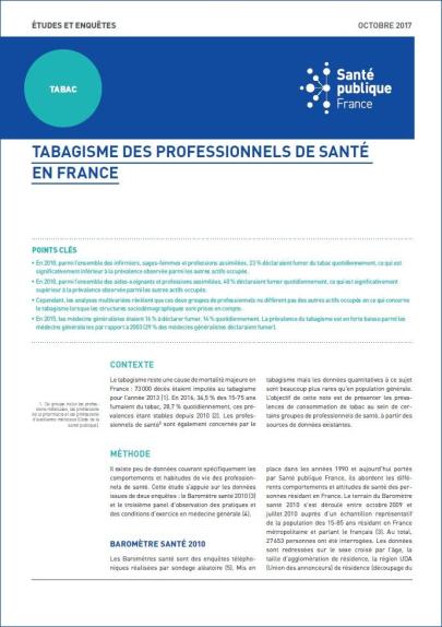 L'objectif de cette note est de présenter les prévalences de consommation de tabac au sein de certains groupes de professionnels de santé, à partir des sources de données existantes.